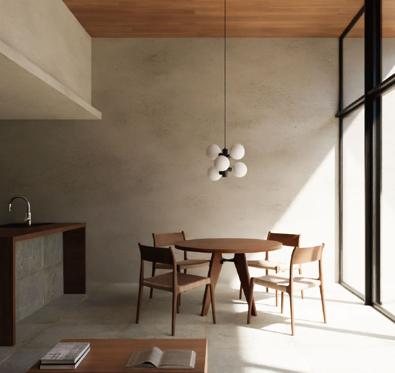 調湿効果が高いため、すっきりとした空間に。 また、化学物質も吸着分解するので消臭効果が高い。 職人さんとの共同開発により扱いやすく施工性が良いので 多彩な表現が可能です。